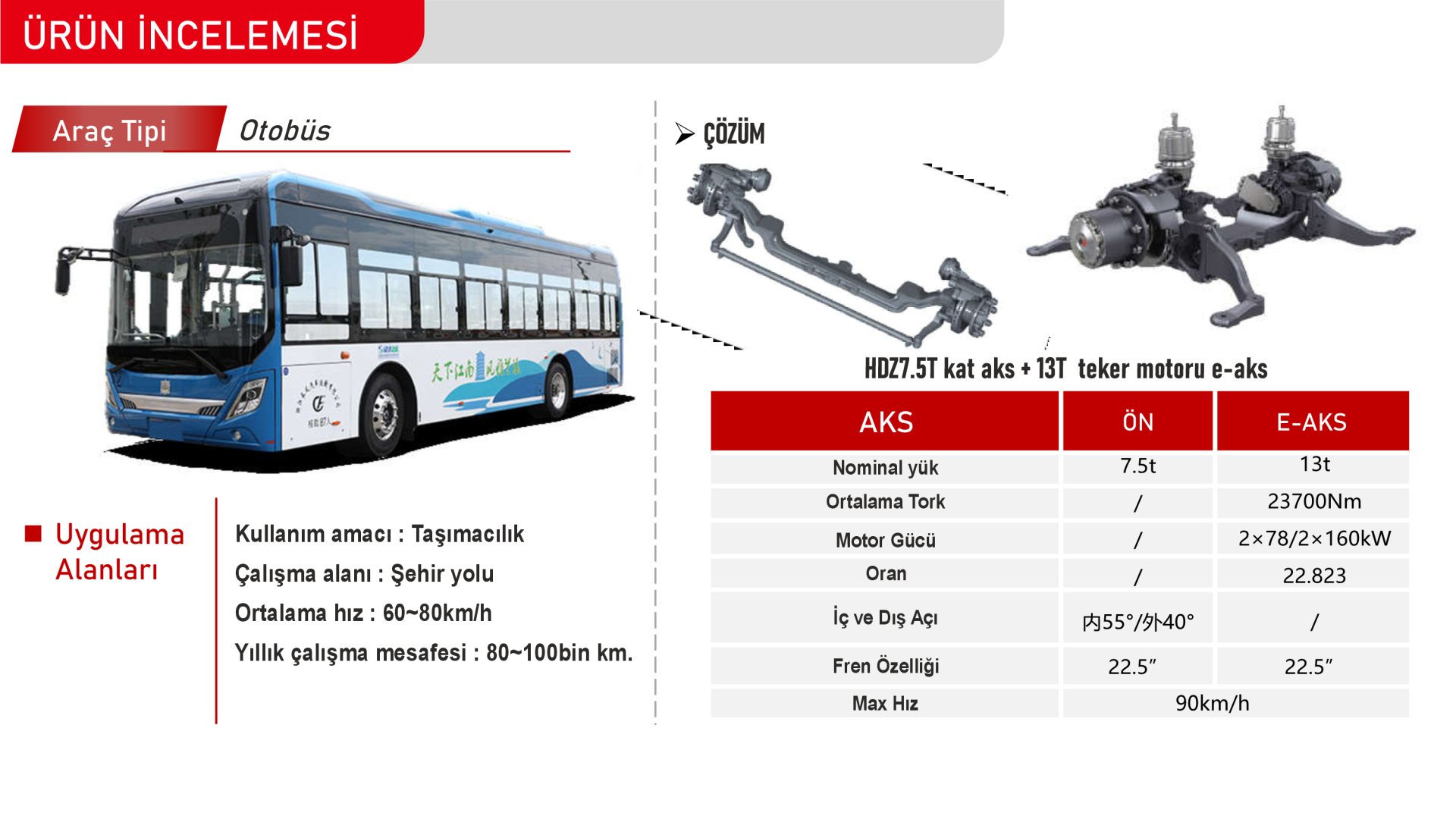 HDZ7.5T kat aks + 13T teker motoru e-aks